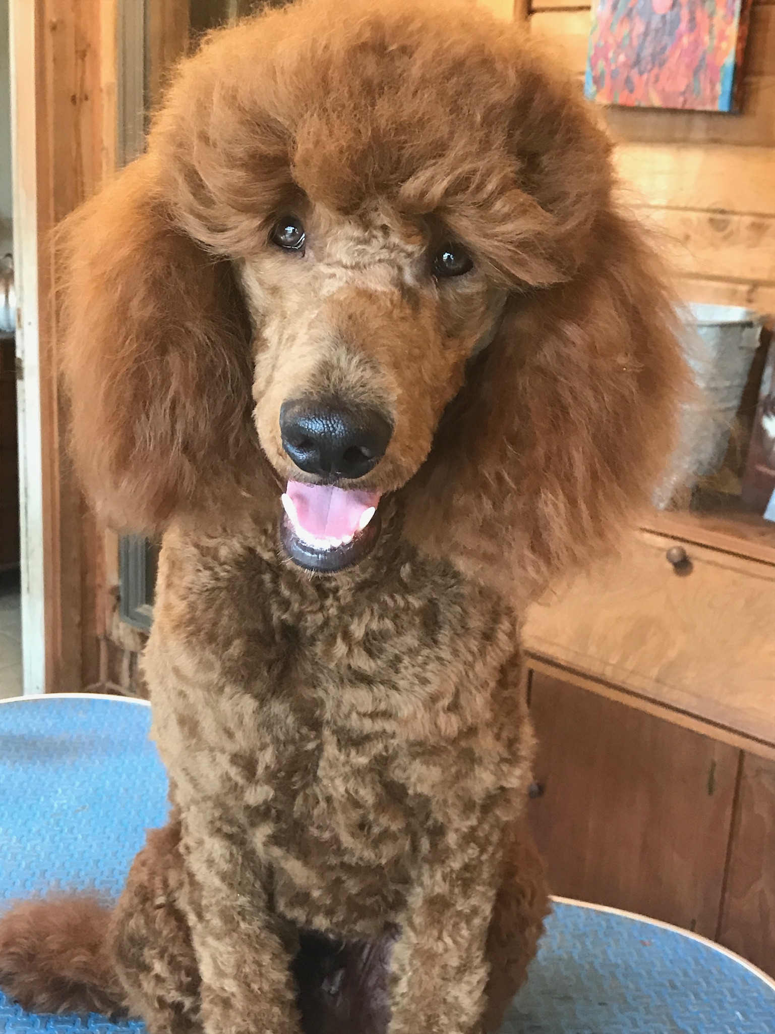 This stunning guy is a red mahogany AKC registered Standard Poodle. Clay is a fun, lively boy that weighs 55 lbs.